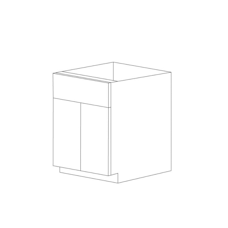 2 door sink base cabinet with 2 false drawer fronts and no shelf. Open back for plumbing installation.