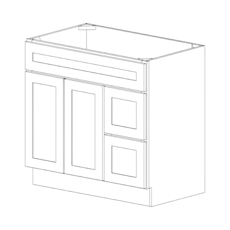 Classic Creme Shaker 36" Vanity Combo: Two Doors + Two Drawers (Right) - RTA