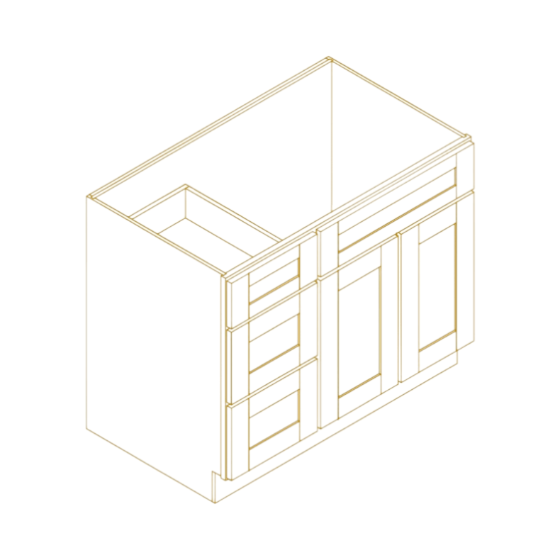 Classic Creme Shaker 42" Vanity Combo: Two Doors + Three Drawers (Left) - RTA