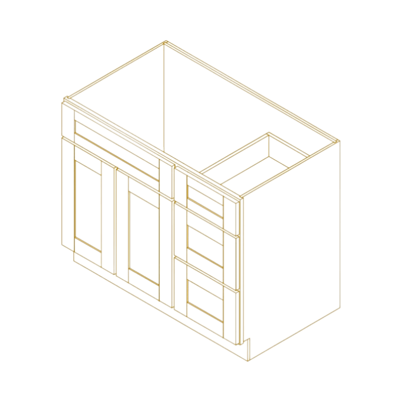 Classic Creme Shaker 42" Vanity Combo: Two Doors + Three Drawers (Right) - RTA
